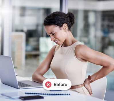 "I sit at a desk eight hours a day. Every day I would bend in different directions trying to get comfortable and I would end my day in pain. My back hurt, my hips hurt, everything hurt. On day one of using this cushion, my pain started to go away. When I sit down, I can feel it realigning my spine and the pain instantly stops. I am so happy I purchased this cushion!"Belinda C.